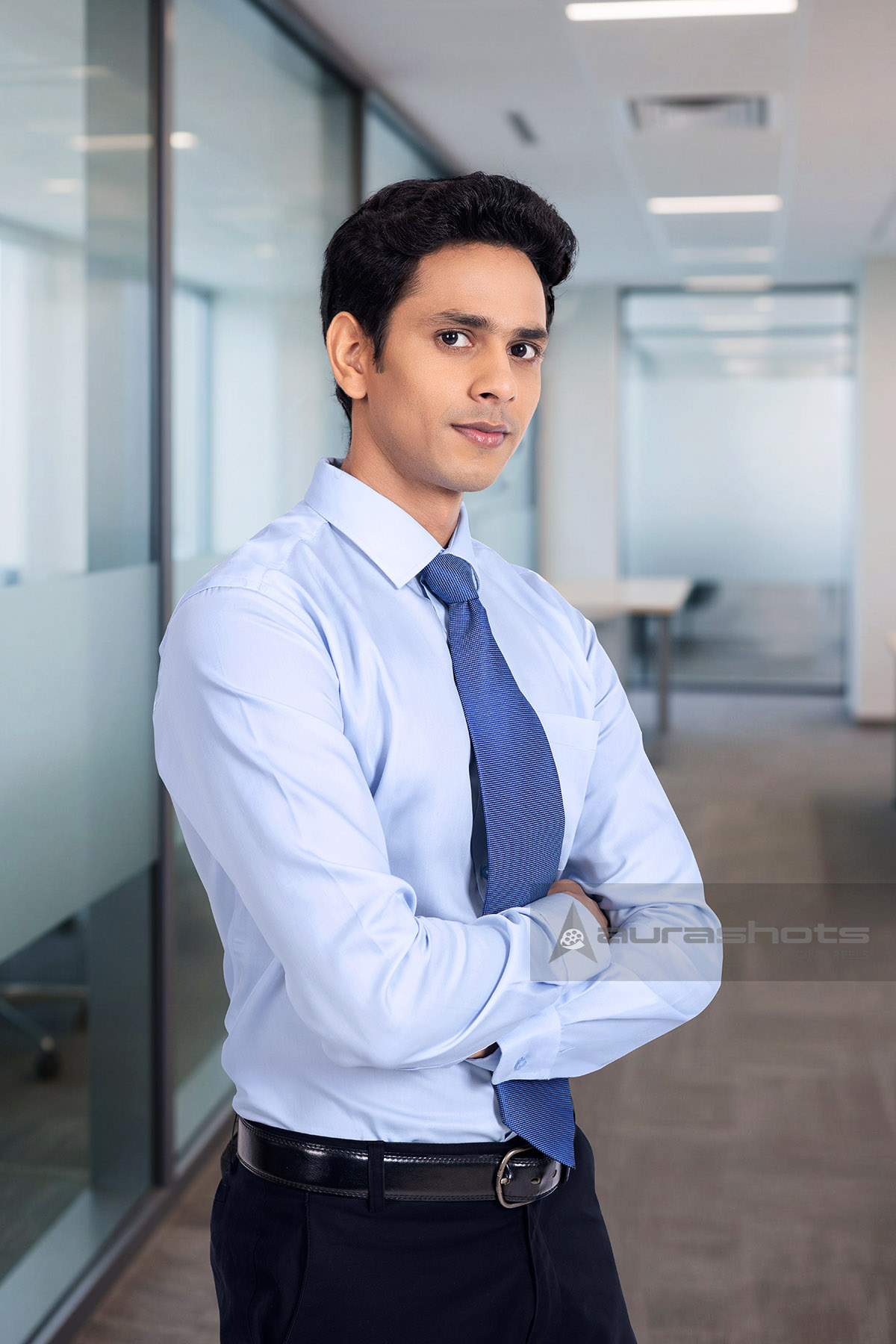 AS26030010-Confident Indian businessman in formal wear with arms crossed in office