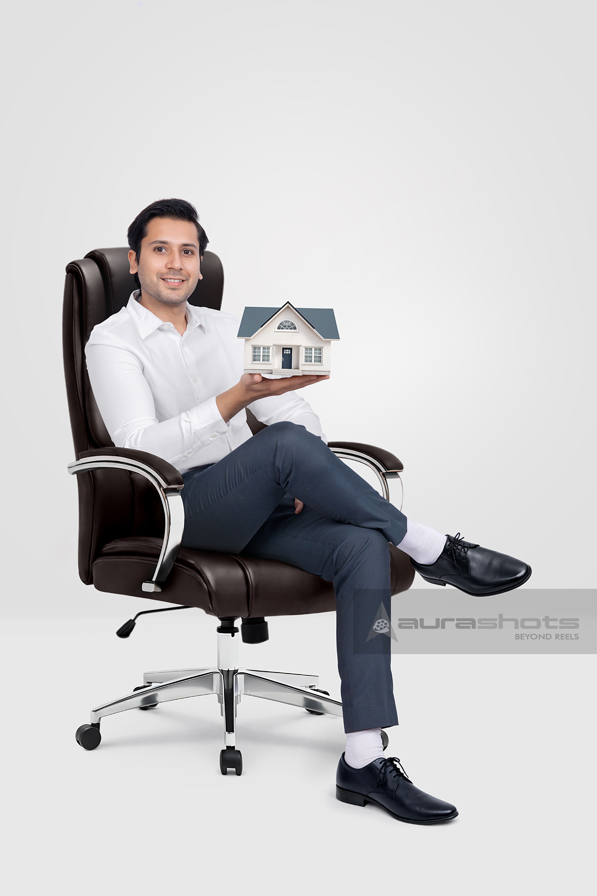 AS25080209-Confident Indian Man Holding House Model for Real Estate