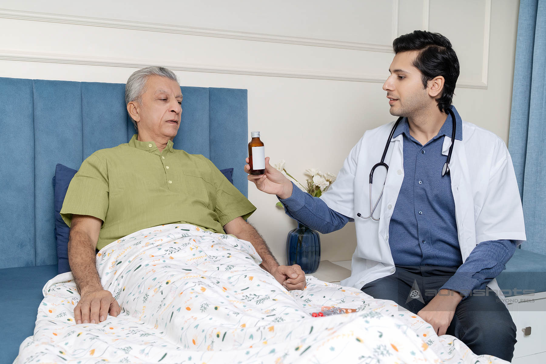 AS25110036-Doctor consulting an elderly patient in bed