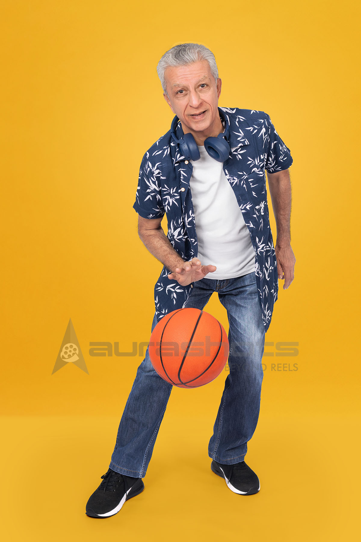 AS25090037-Energetic Indian Senior Man Dribbling Basketball