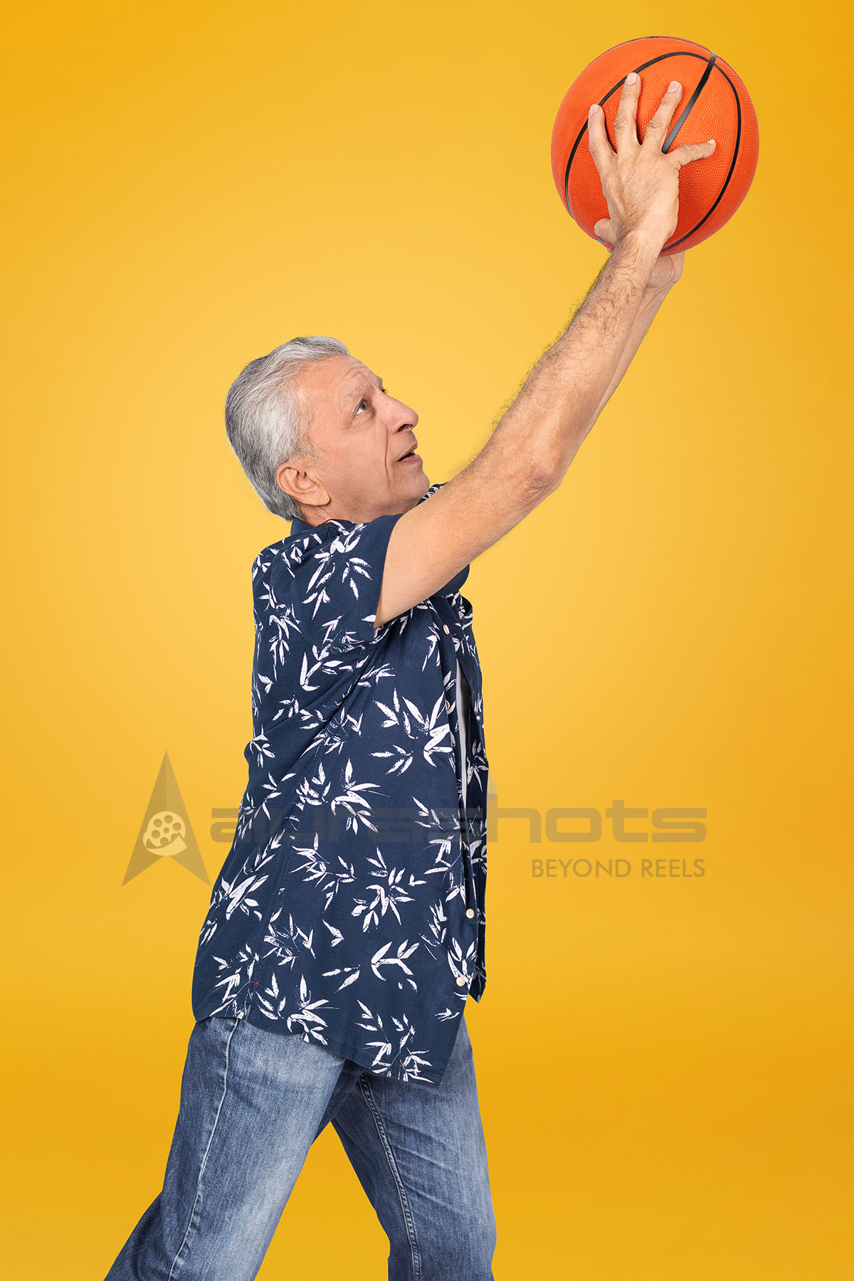 AS25090042-Energetic Indian Senior Man Playing Basketball