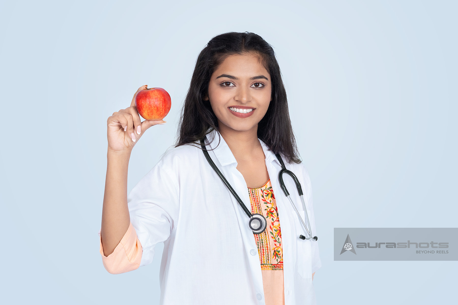 AS25110231-Female Doctor Holding a Fresh Red Apple
