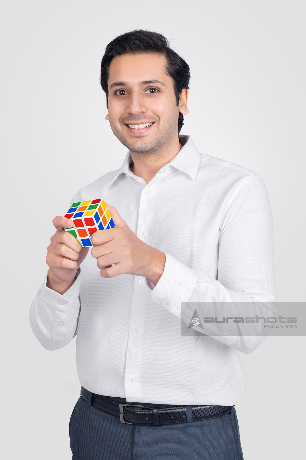 AS25080226-Focused Indian Man Solving Rubiks Cube