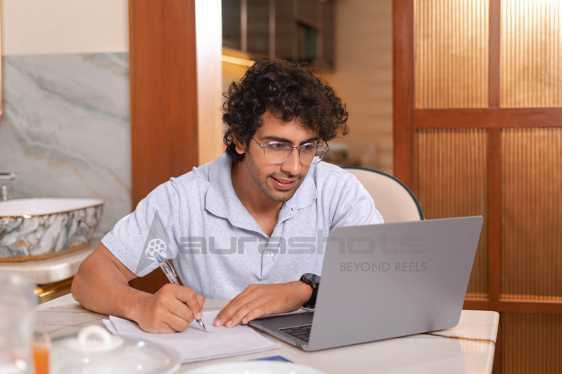 AS25021532-Focused man writing notes while working