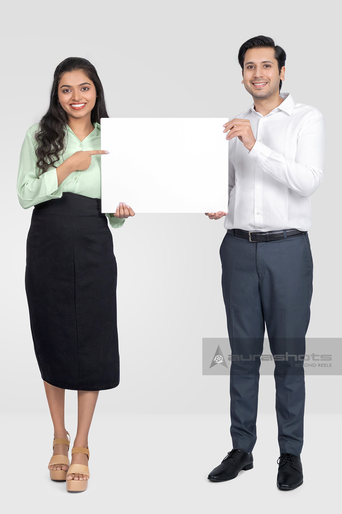 AS25080075-Happy Indian Business Professionals Holding Blank Sign