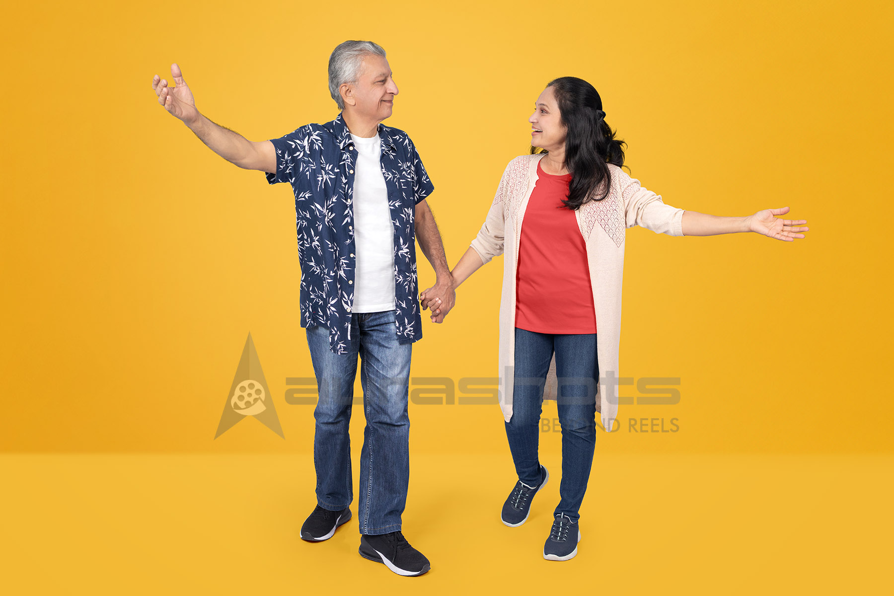 AS25090137-Happy Indian Senior Couple Holding Hands and Welcoming