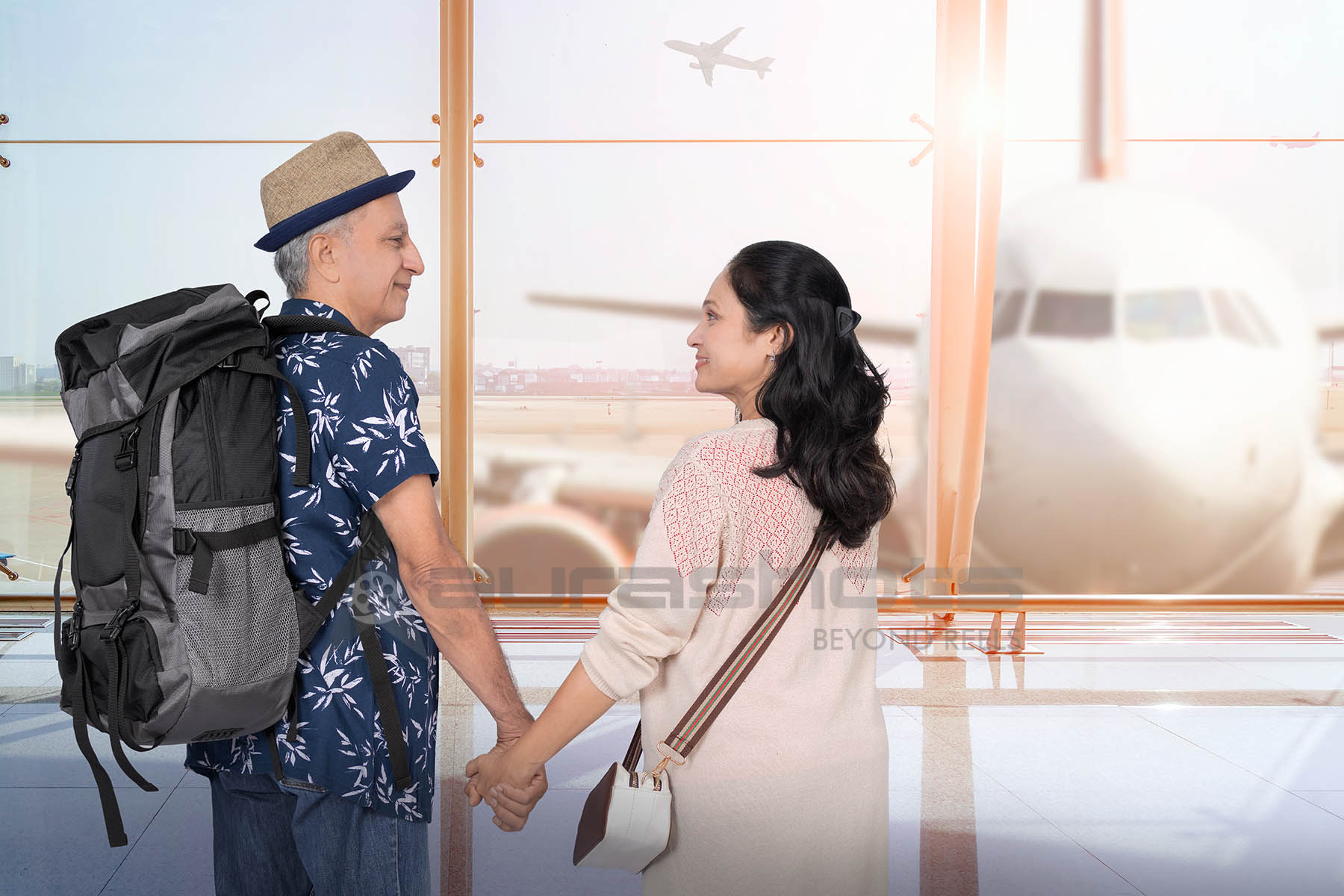 AS25090367-Happy Indian Senior Couple Traveling from Airport