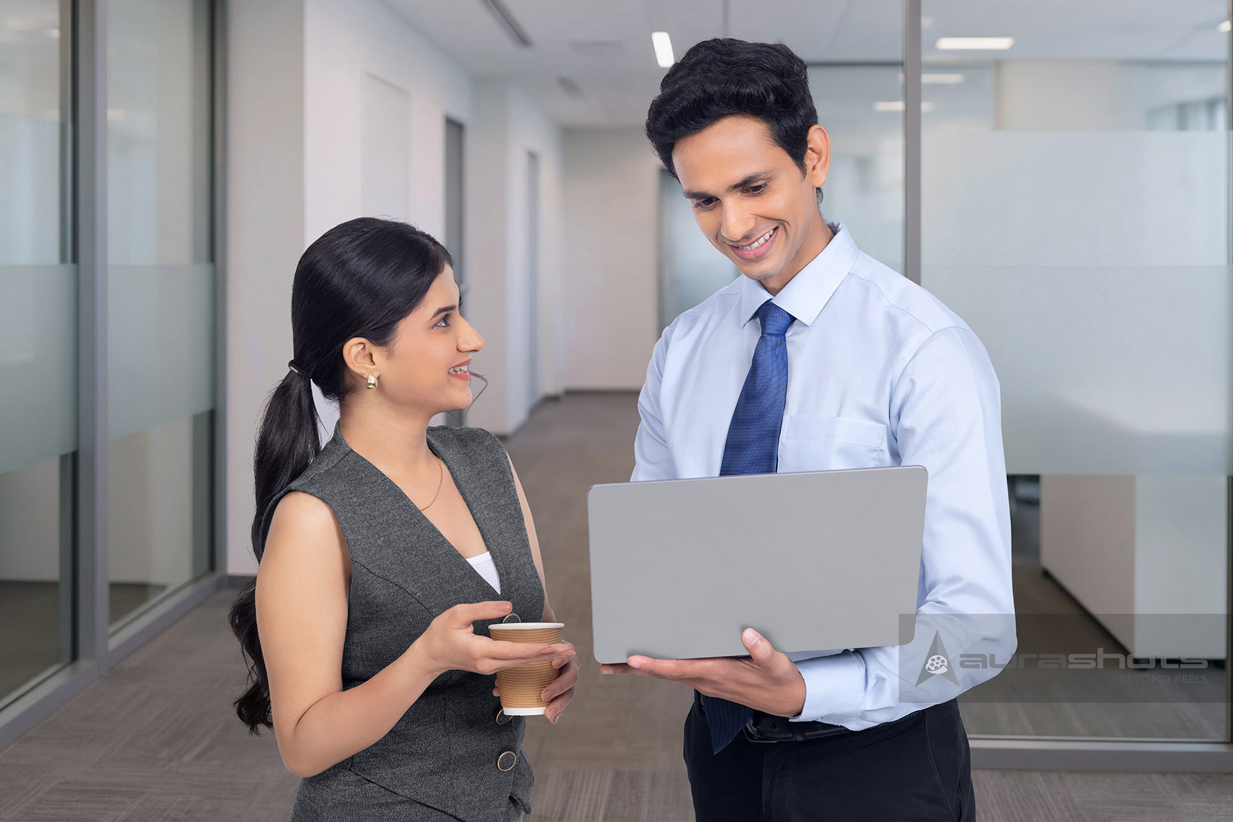 AS26030678-Indian business professionals reviewing laptop together in office