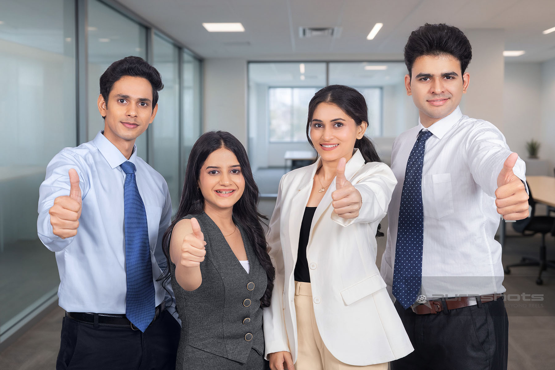 AS26030614-Indian corporate team showing thumbs up for success and approval