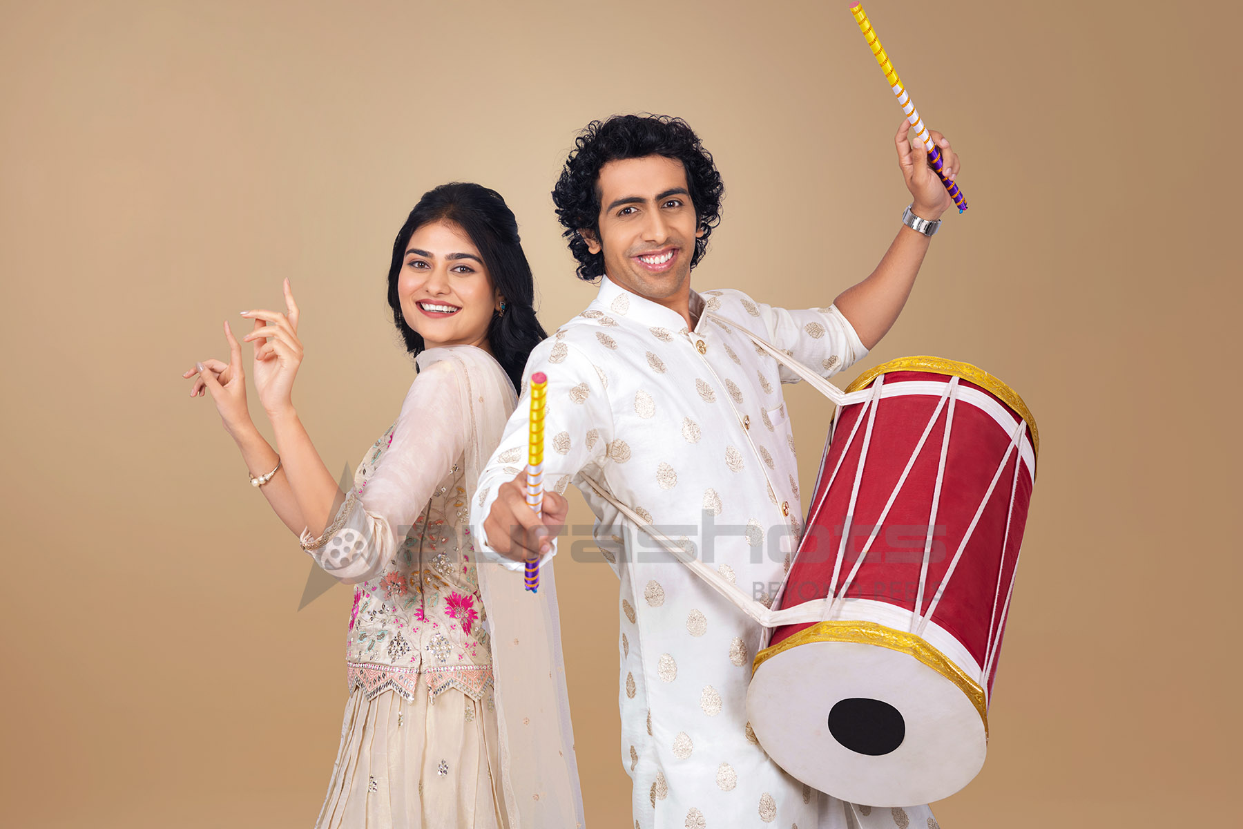 AS25040102-Indian couple celebrating with dhol and dance