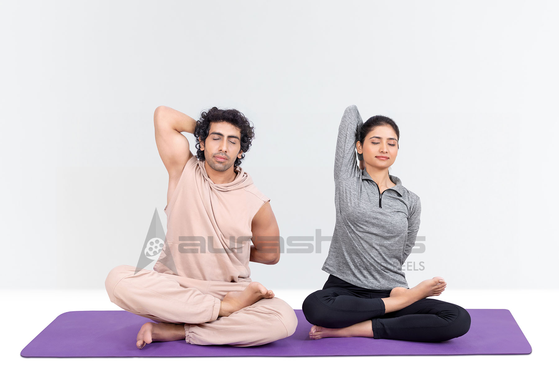 AS25020568-Indian couple doing cow face arms yoga stretch