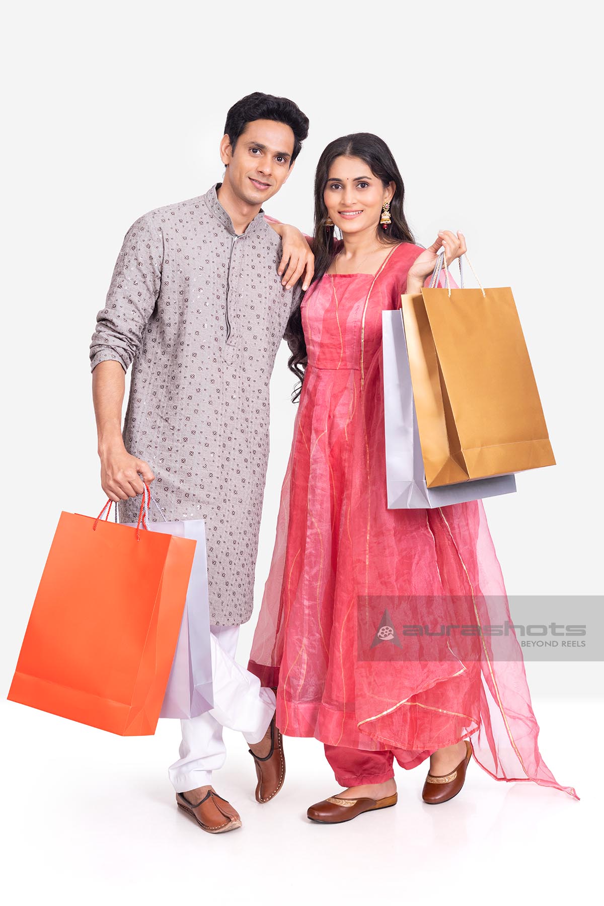 AS26010114-Indian couple holding shopping bags after festive shopping