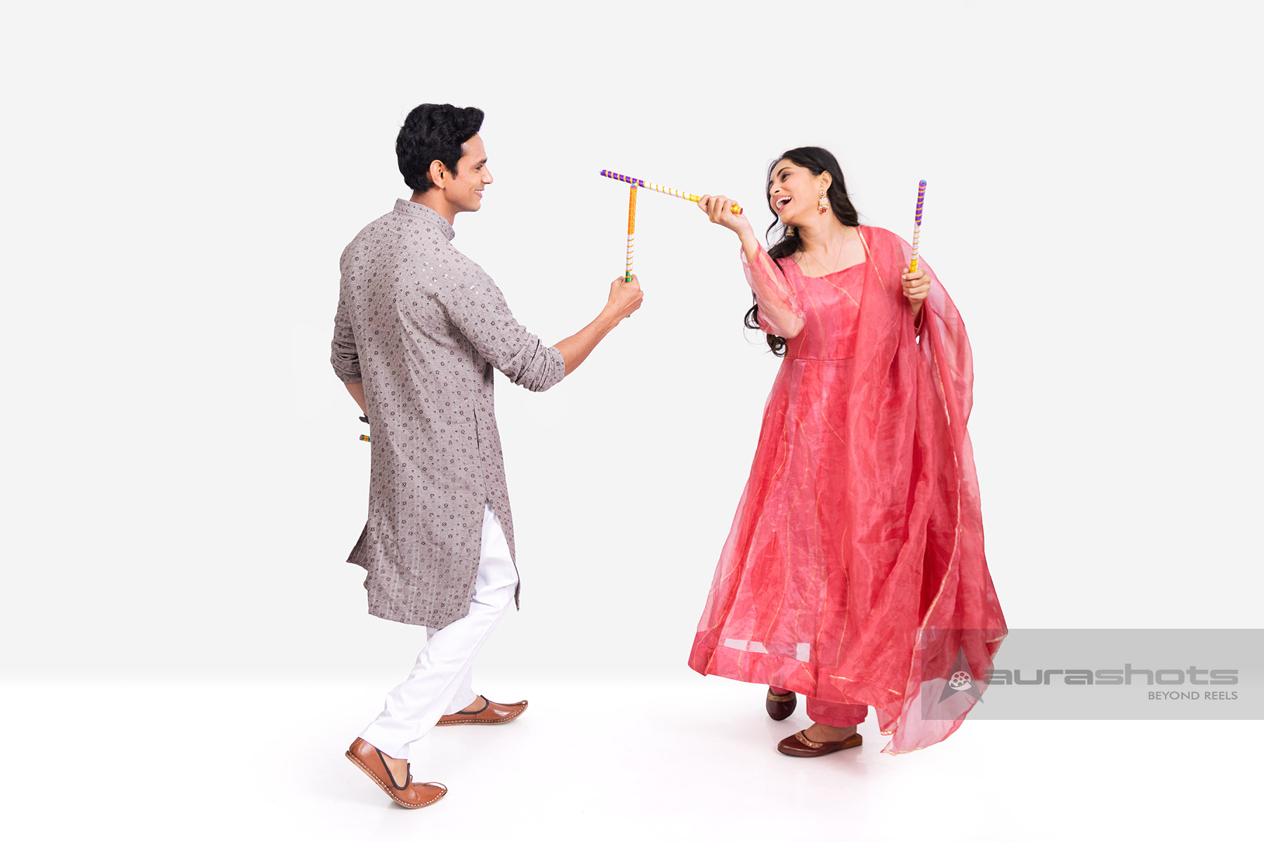 AS26010088-Indian couple playing dandiya during Navratri festival