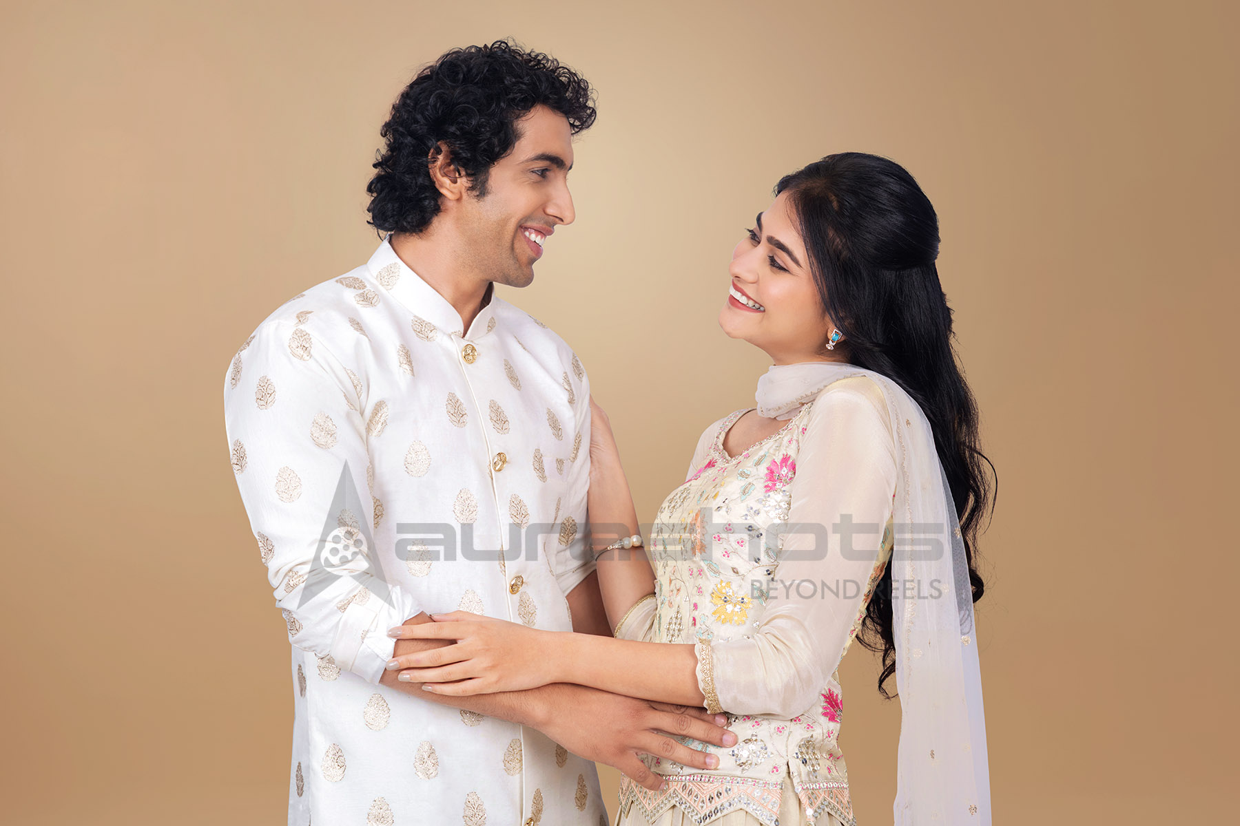 AS25040115-Indian couple smiling wearing traditional attire