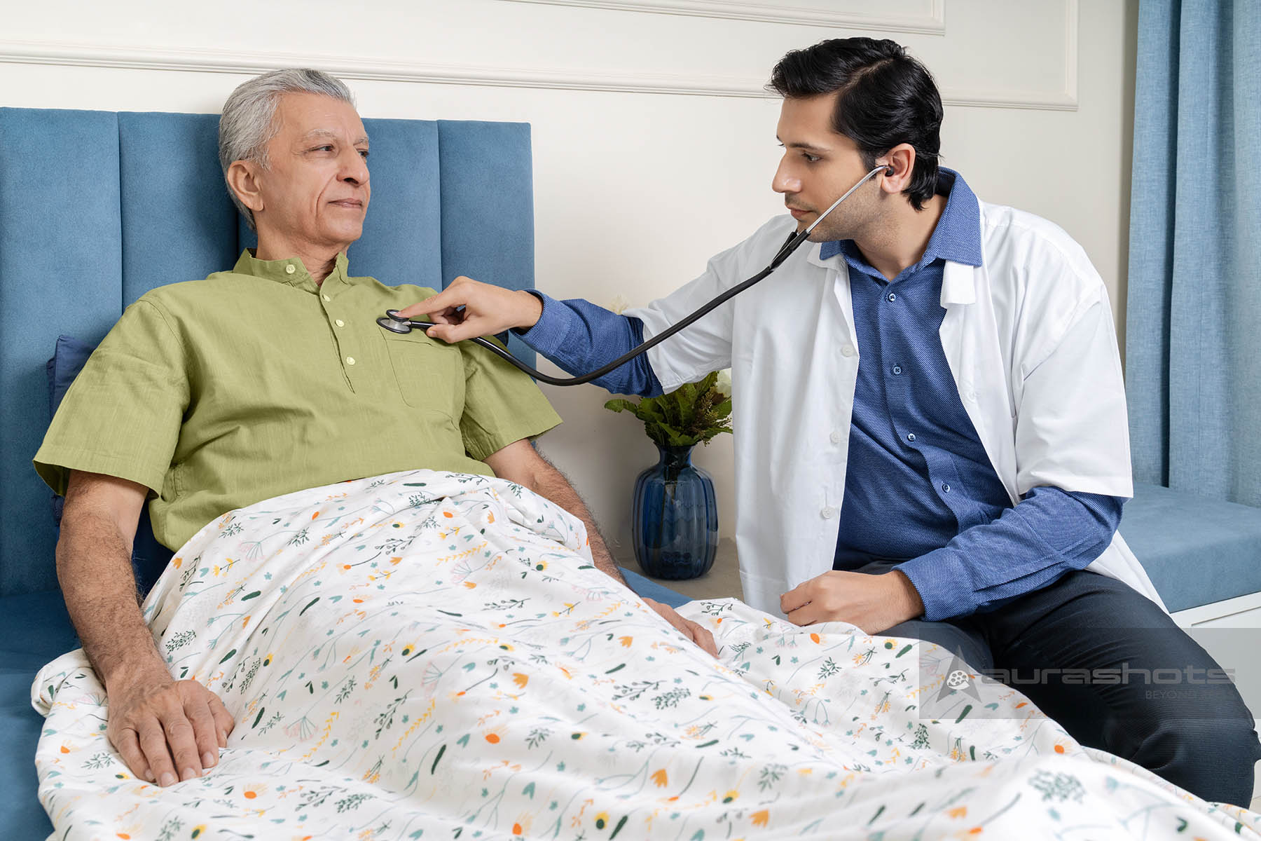 AS25110010-Indian Doctor Checking Senior Male Patient at Home or Clinic