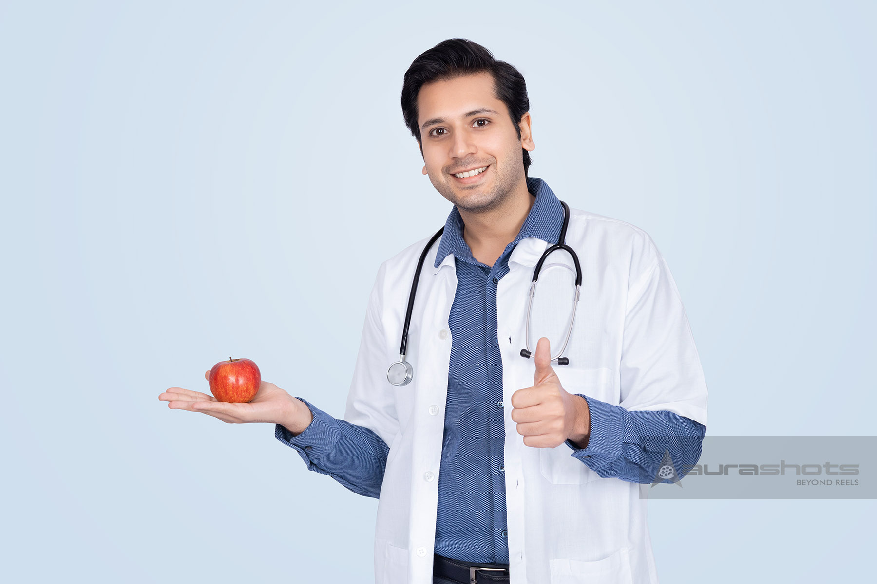 AS25110271-Indian doctor holding apple showing healthy diet concept