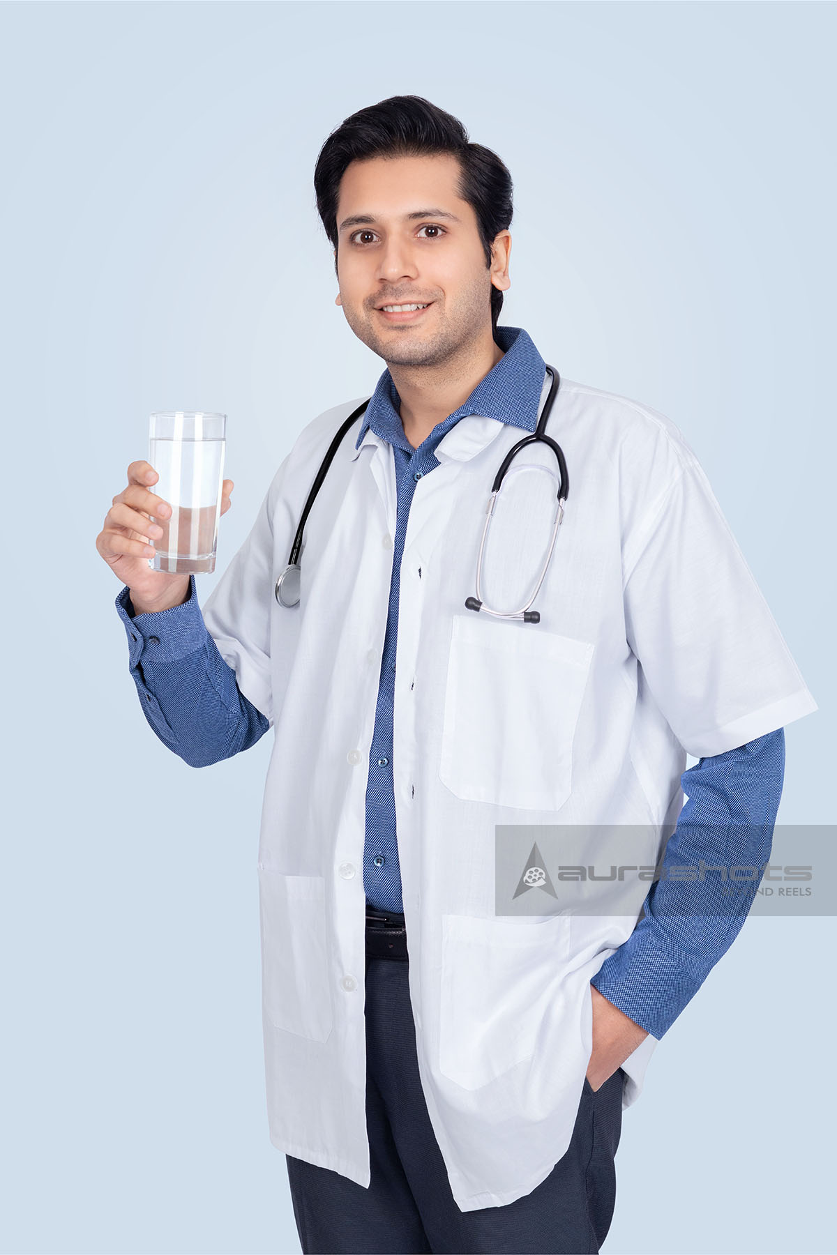 AS25110269-Indian doctor holding glass of water promoting hydration