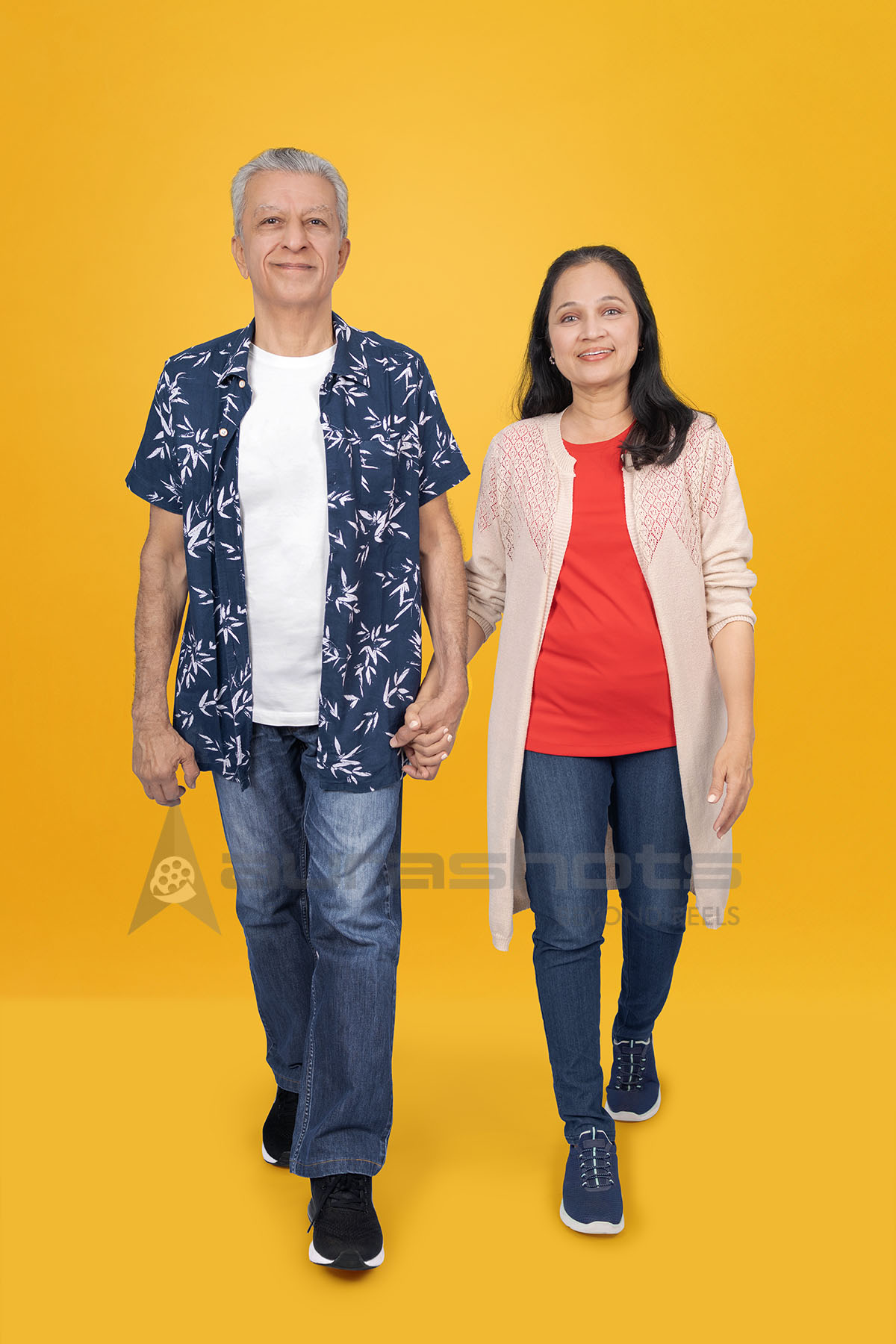 AS25090116-Indian Happy Senior Couple Walking Hand in Hand