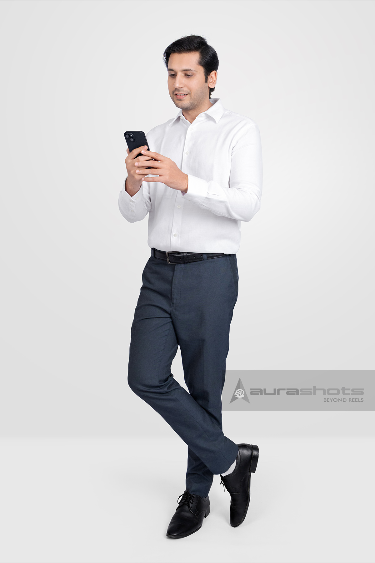 AS25080150-Indian Man Using Smartphone in Formal Attire