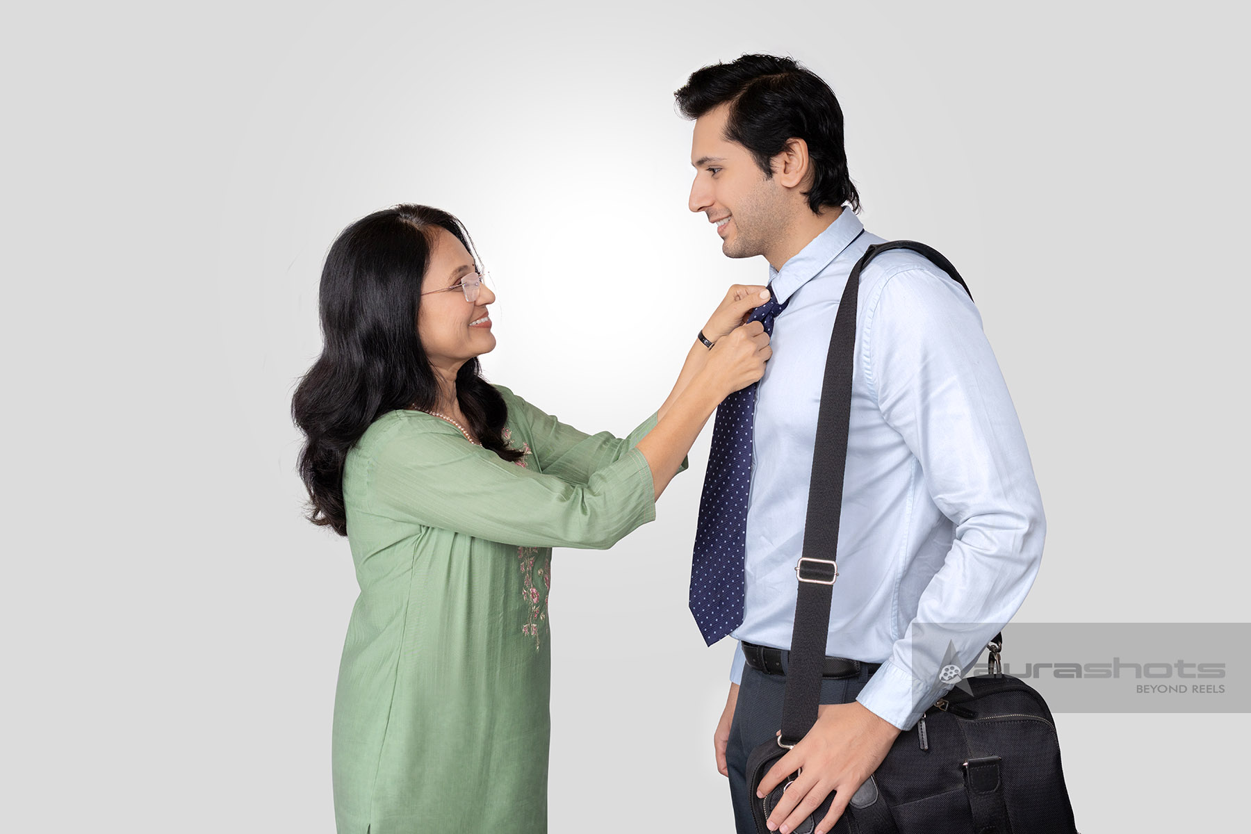 AS25130049-Indian mother adjusting son's tie before he leaves for office