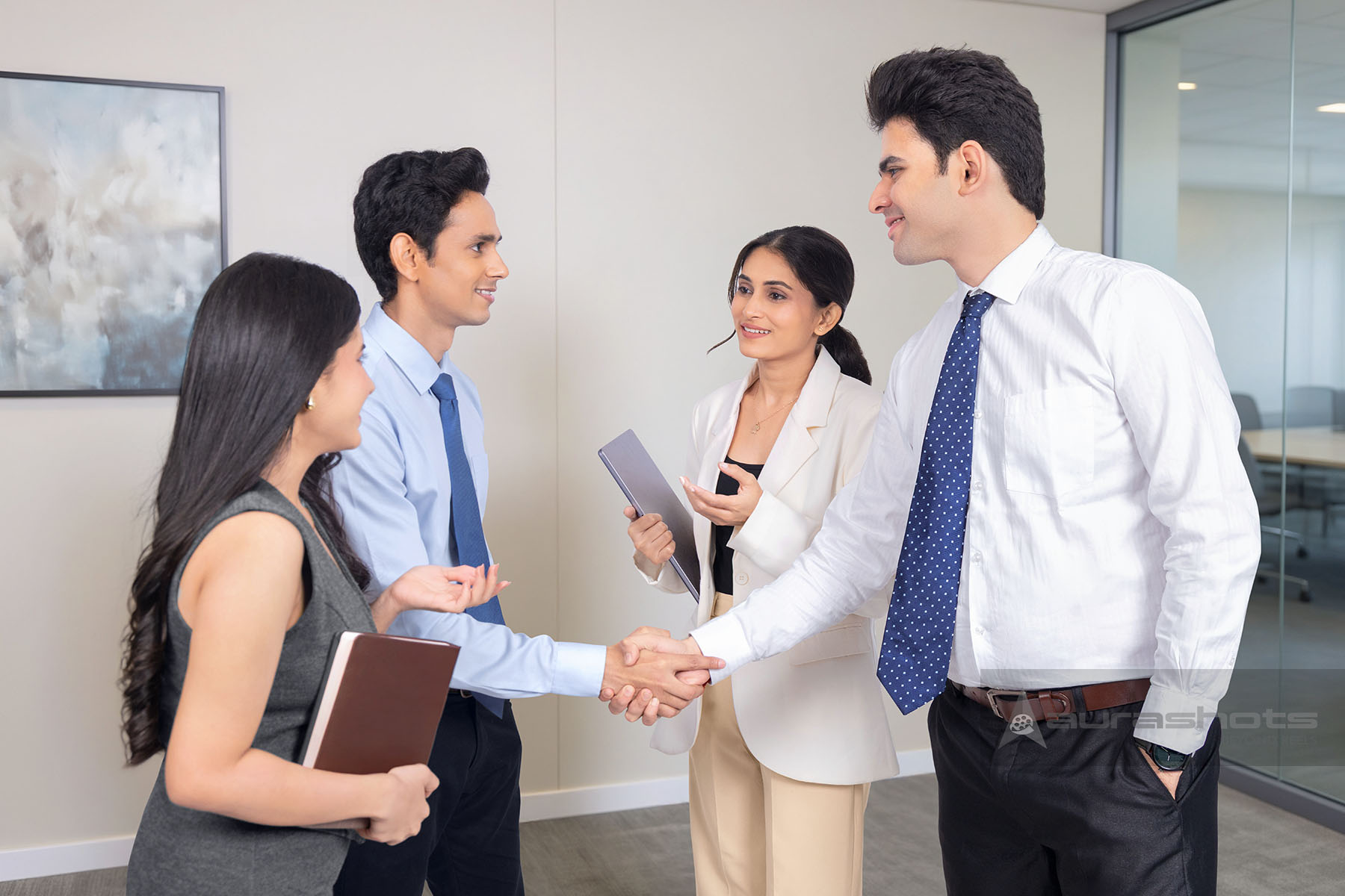 AS26030584-Indian professionals shaking hands during business meeting in office