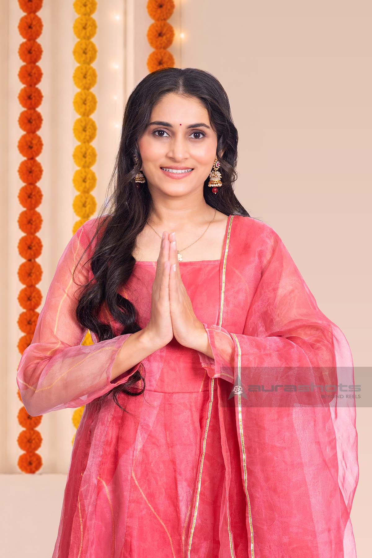 AS26010003-Indian woman greeting with namaste during festival celebration