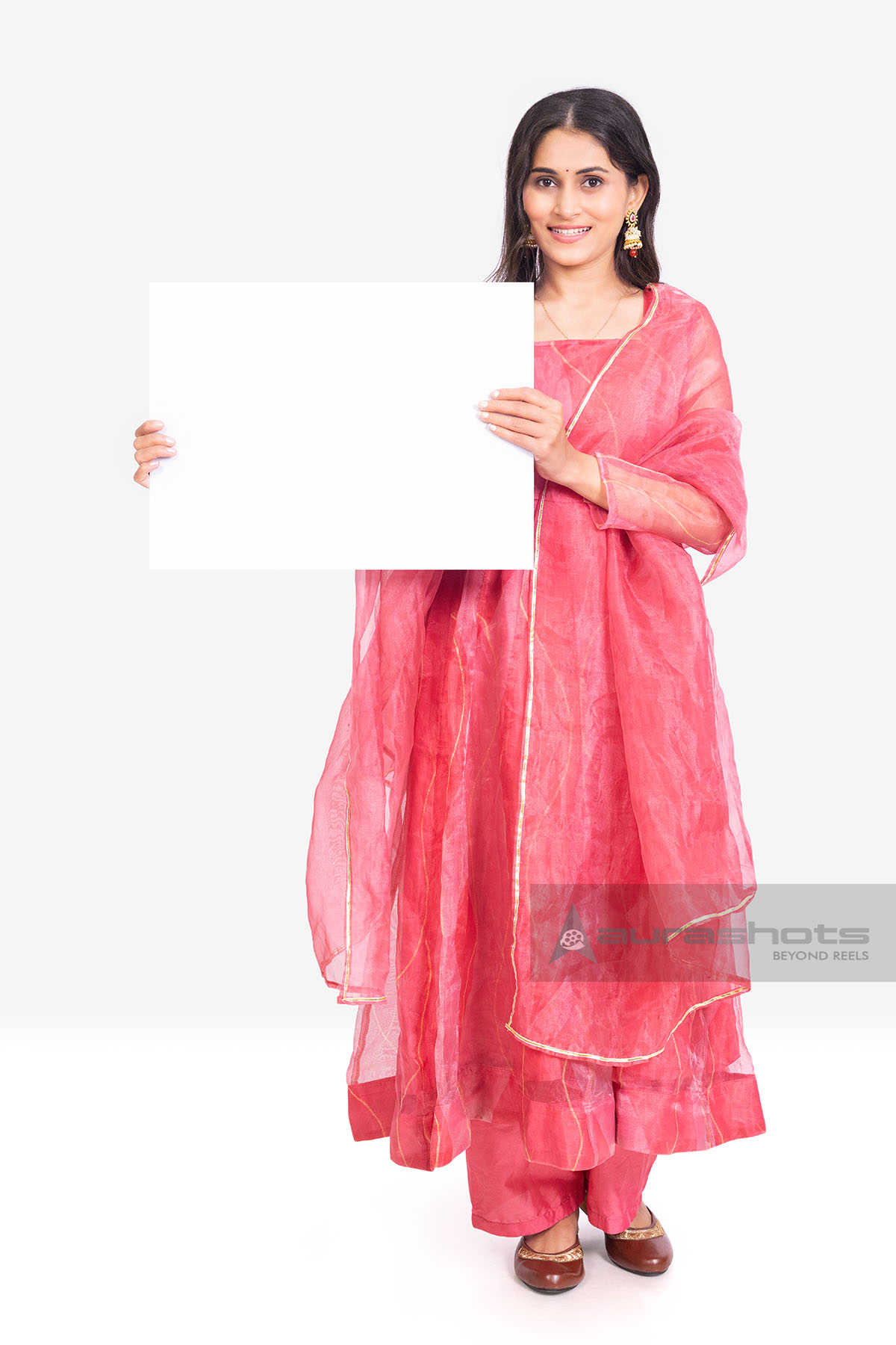 AS26010104-Indian woman holding blank signboard full length