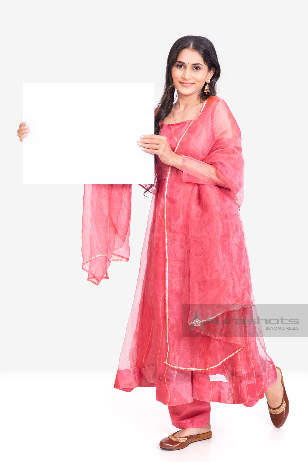 AS26010109-Indian woman holding blank signboard walking pose