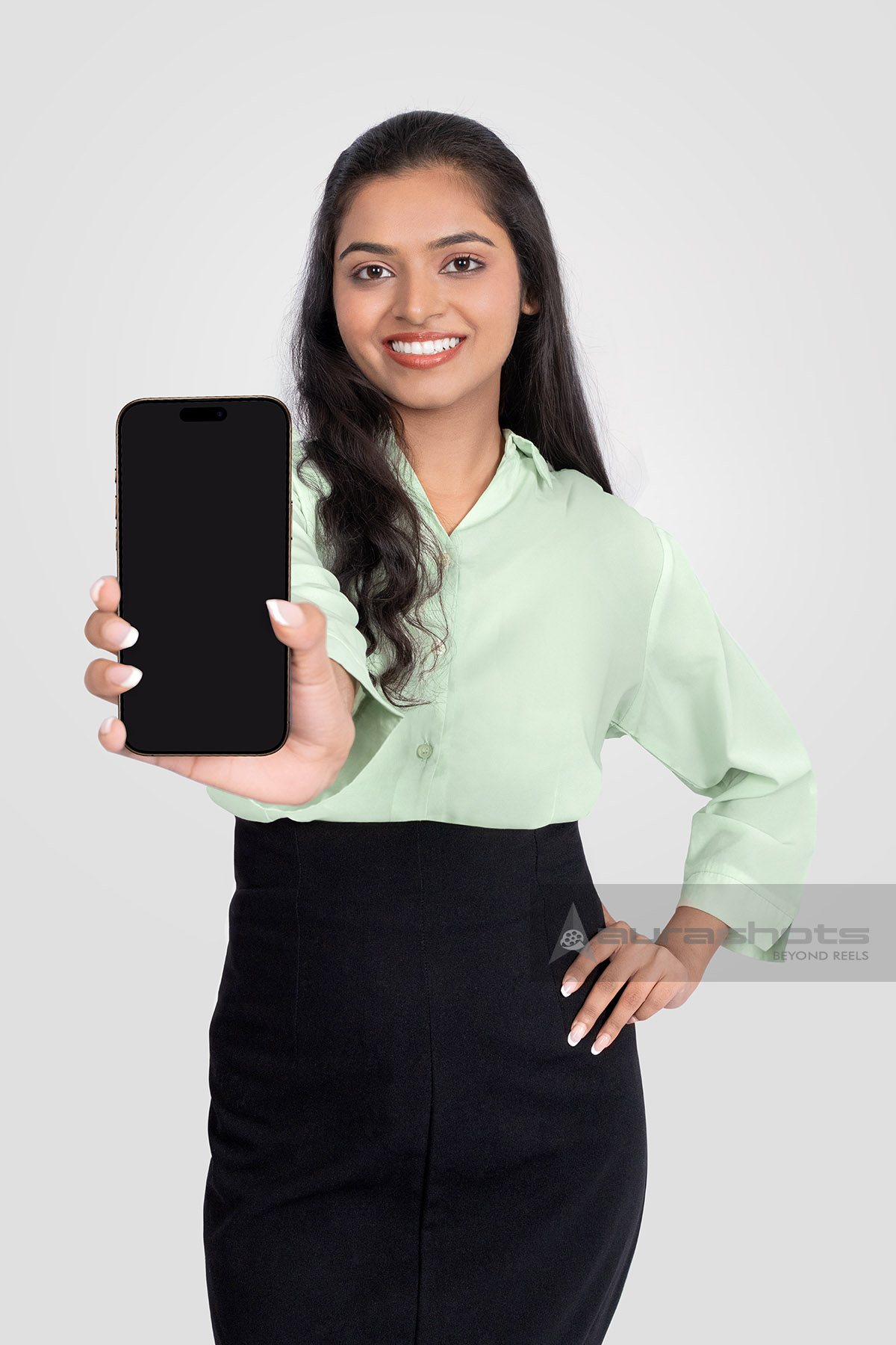 AS25080098-Indian Woman Holding Smartphone