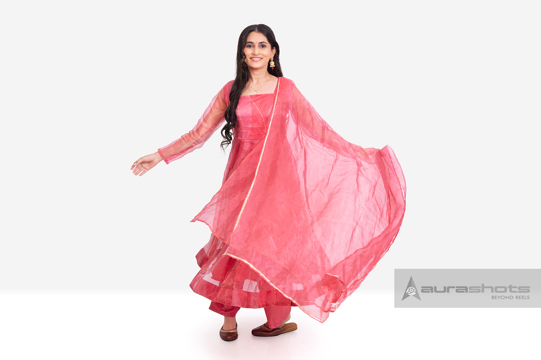 AS26010016-Indian woman twirling in traditional festive outfit