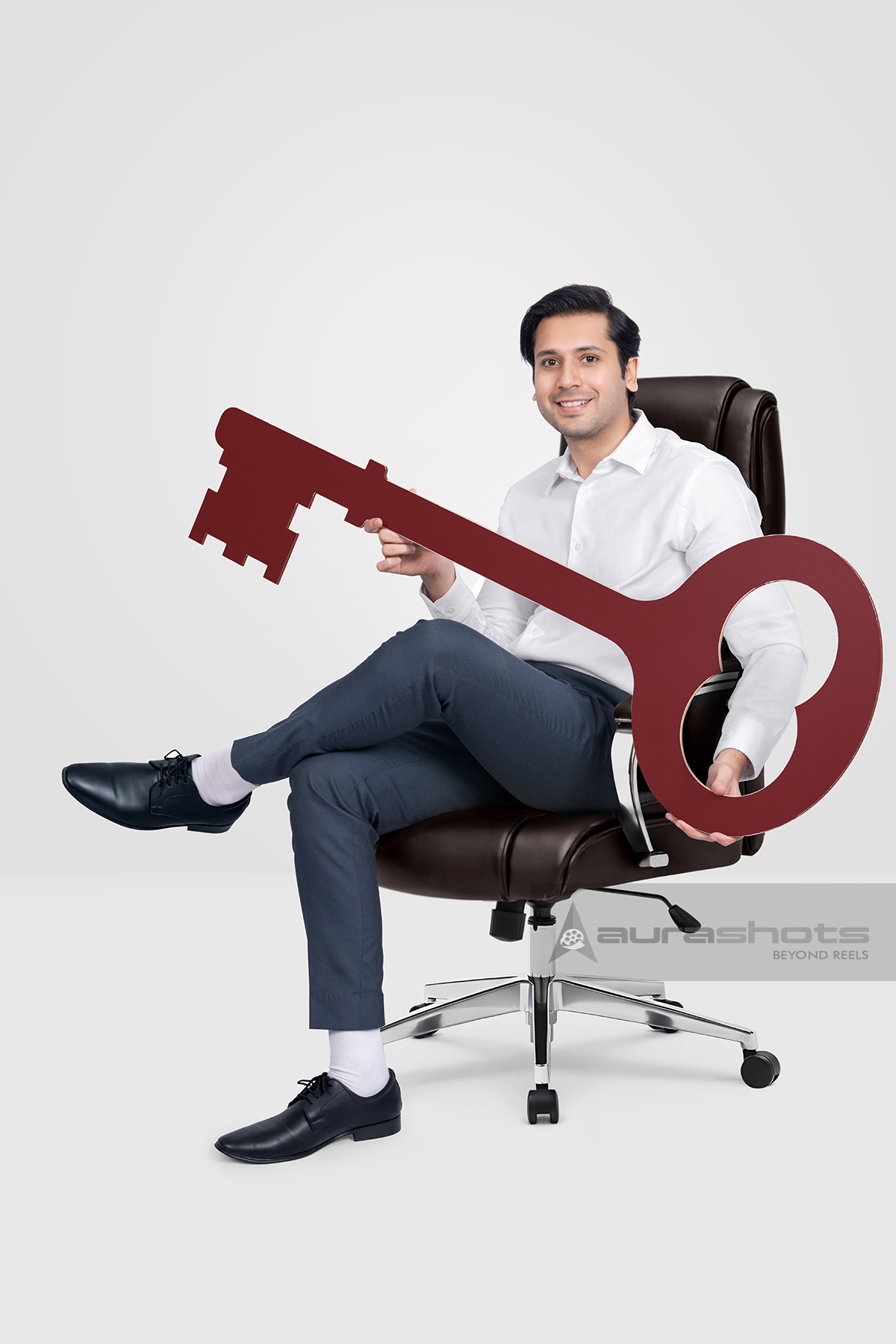 AS25080213-Man holding a large key representing solutions and success