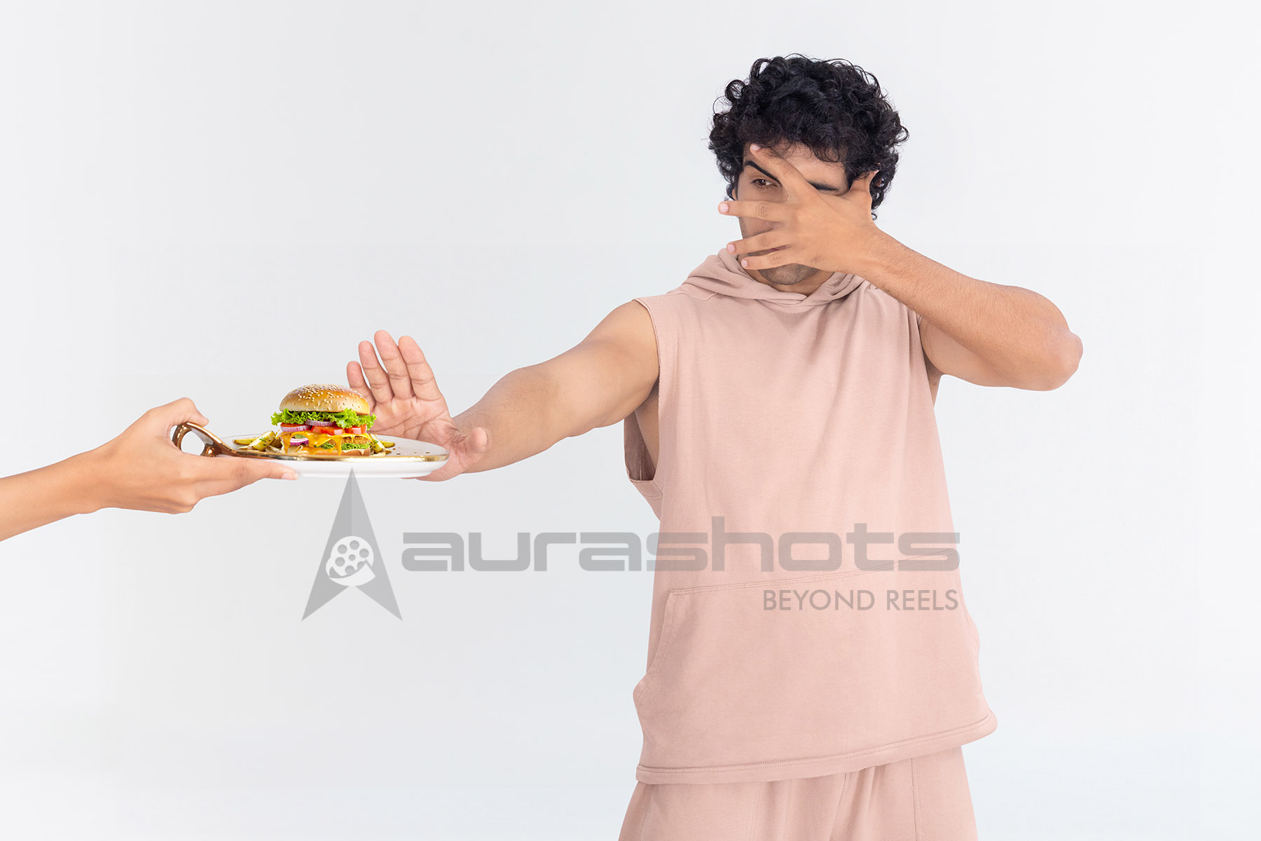 AS25020719-Man rejecting junk food plate