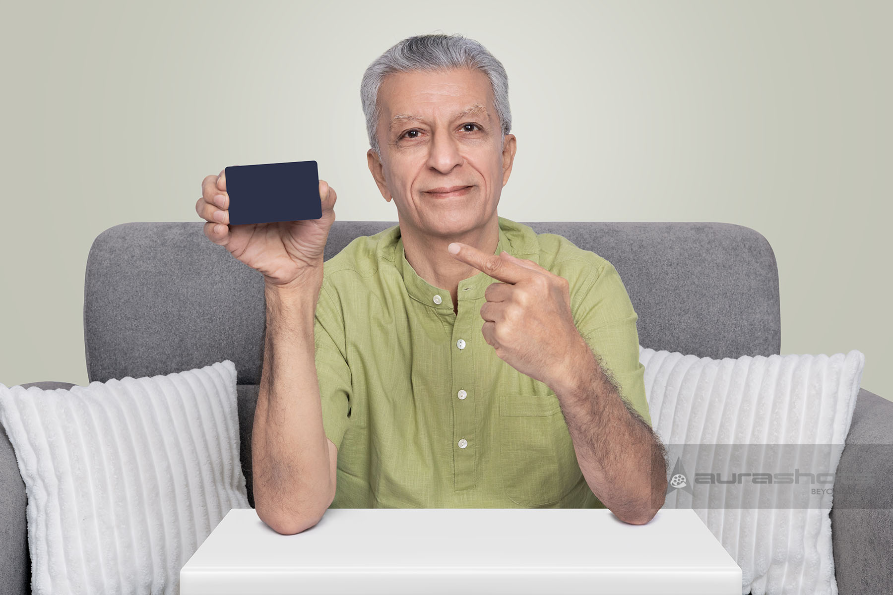 AS25150119-Senior Indian man pointing at credit card promoting digital banking