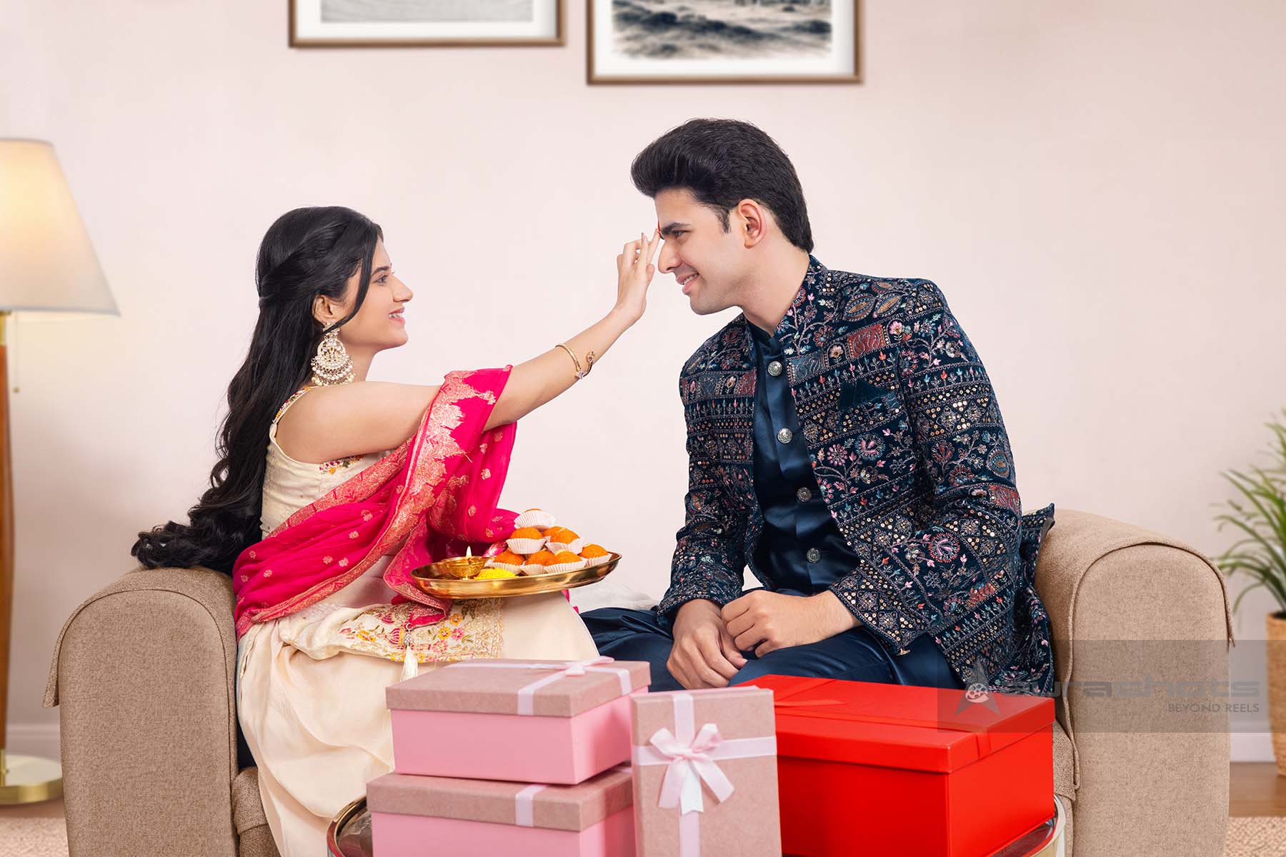 AS26060016-Sister applying tilak to brother during Raksha Bandhan ritual