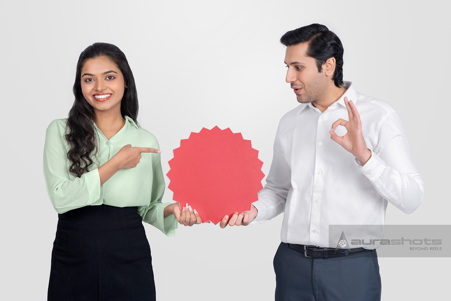 AS25080067-Smiling Indian Couple Presenting a Blank Red Sign