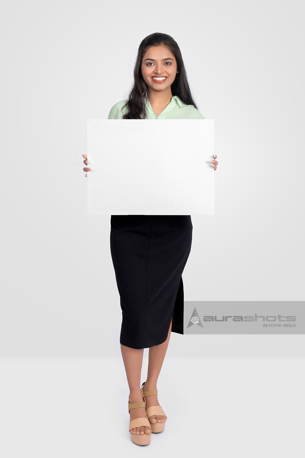 AS25080103-Smiling Indian Woman Holding a Blank White Board