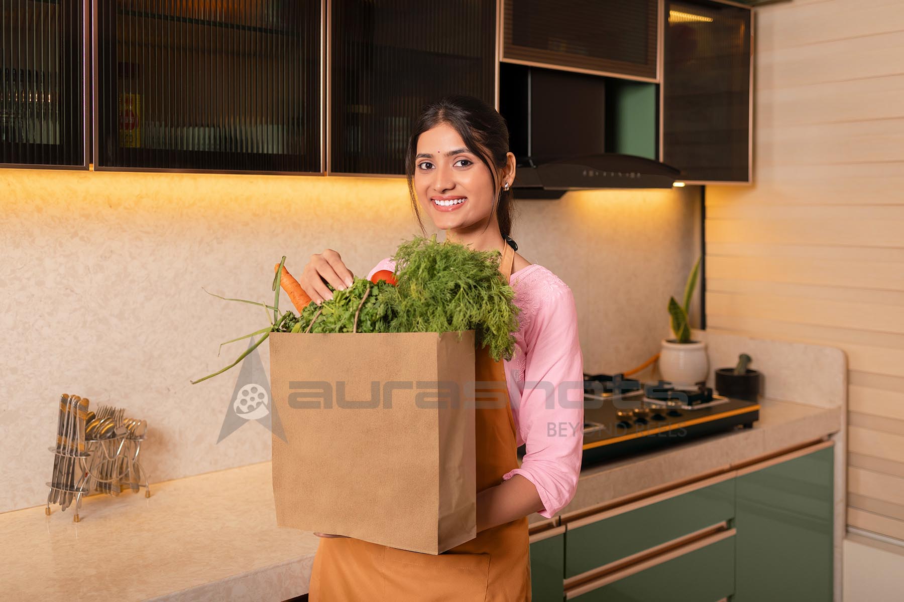 AS25021158-Woman holding grocery bag full of vegetables