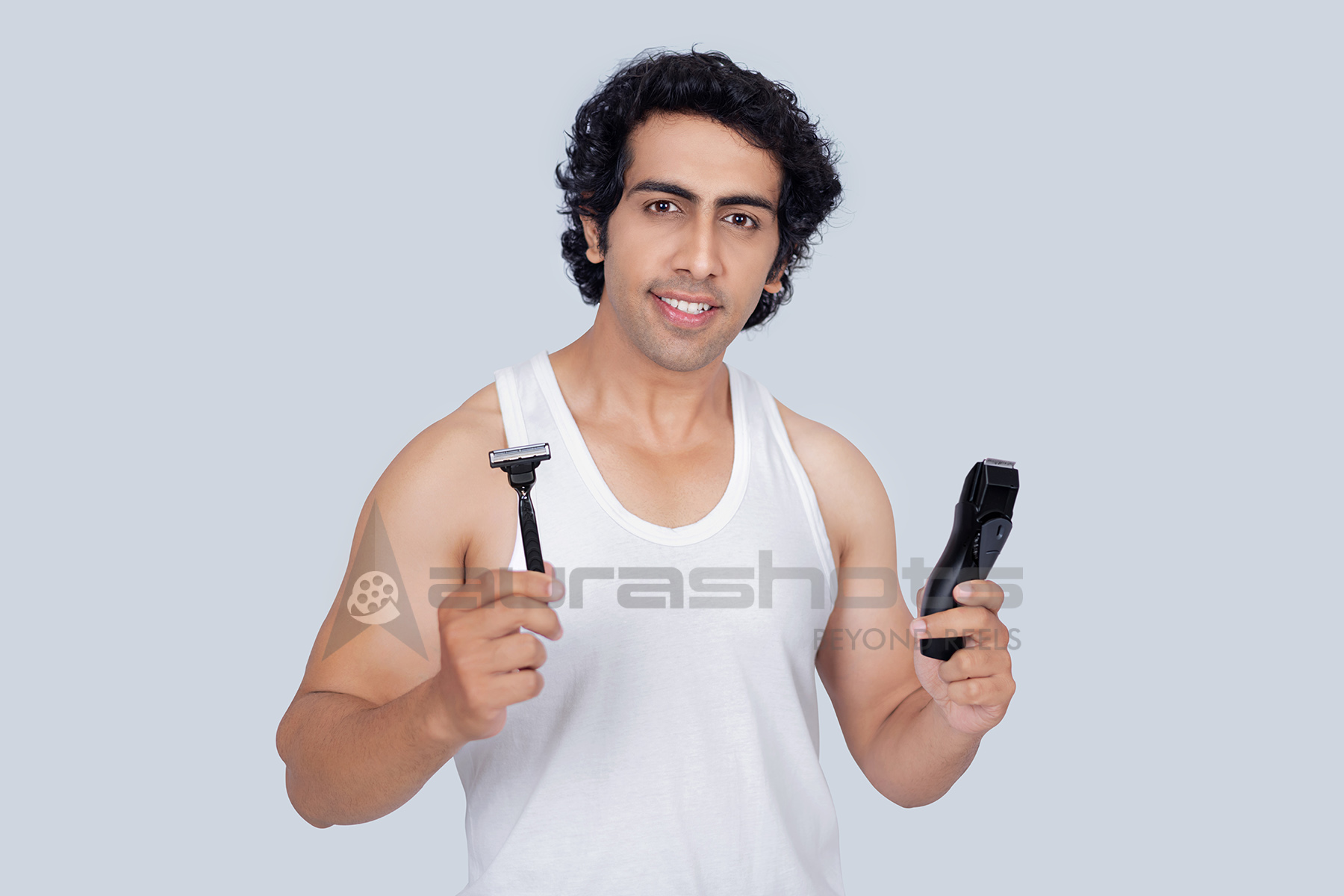 AS25030283-Young man holding a razor and trimmer