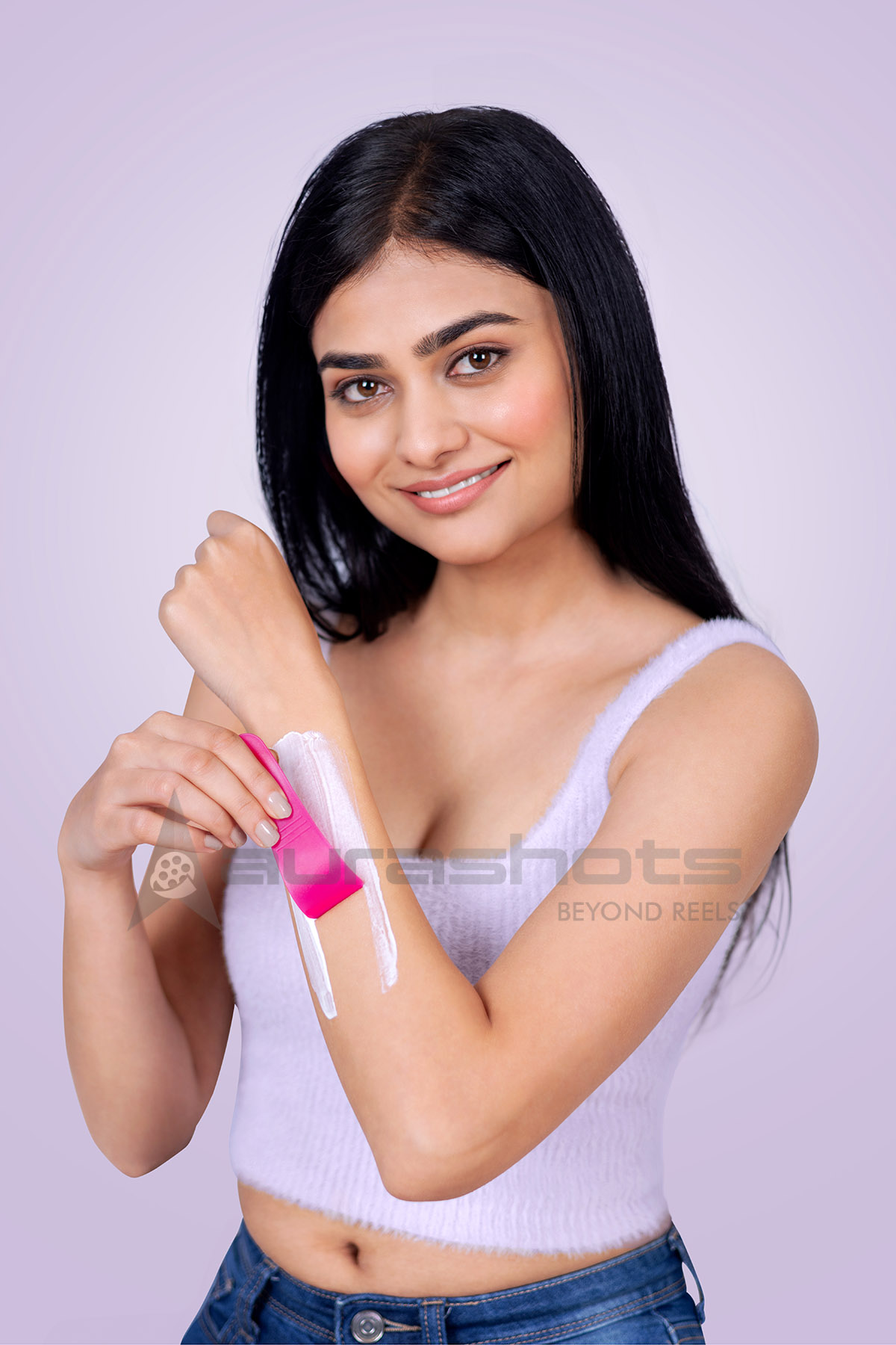 AS25030230-Young woman removing hair with spatula on arm