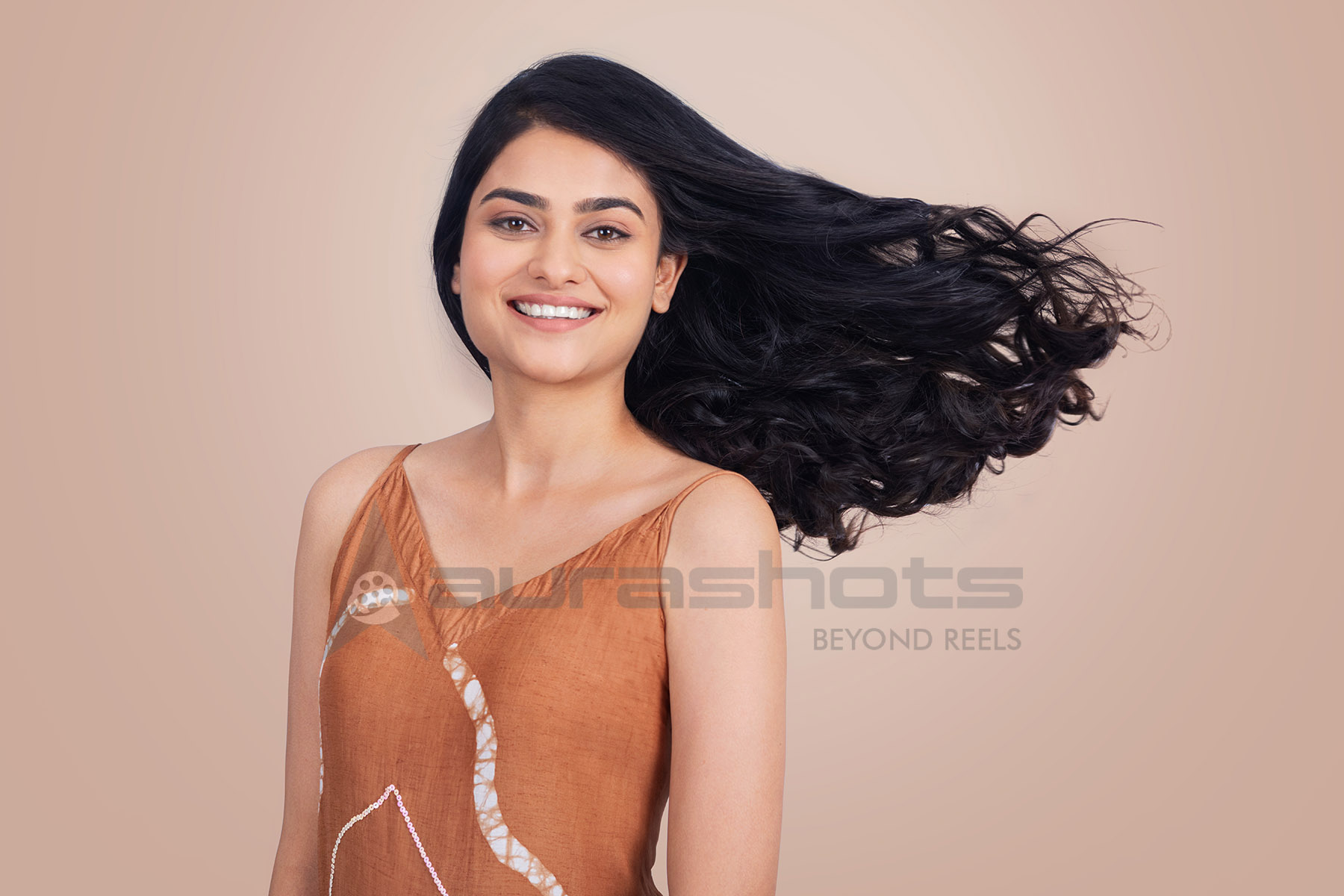AS25030450-Young woman smiling with flowing hair