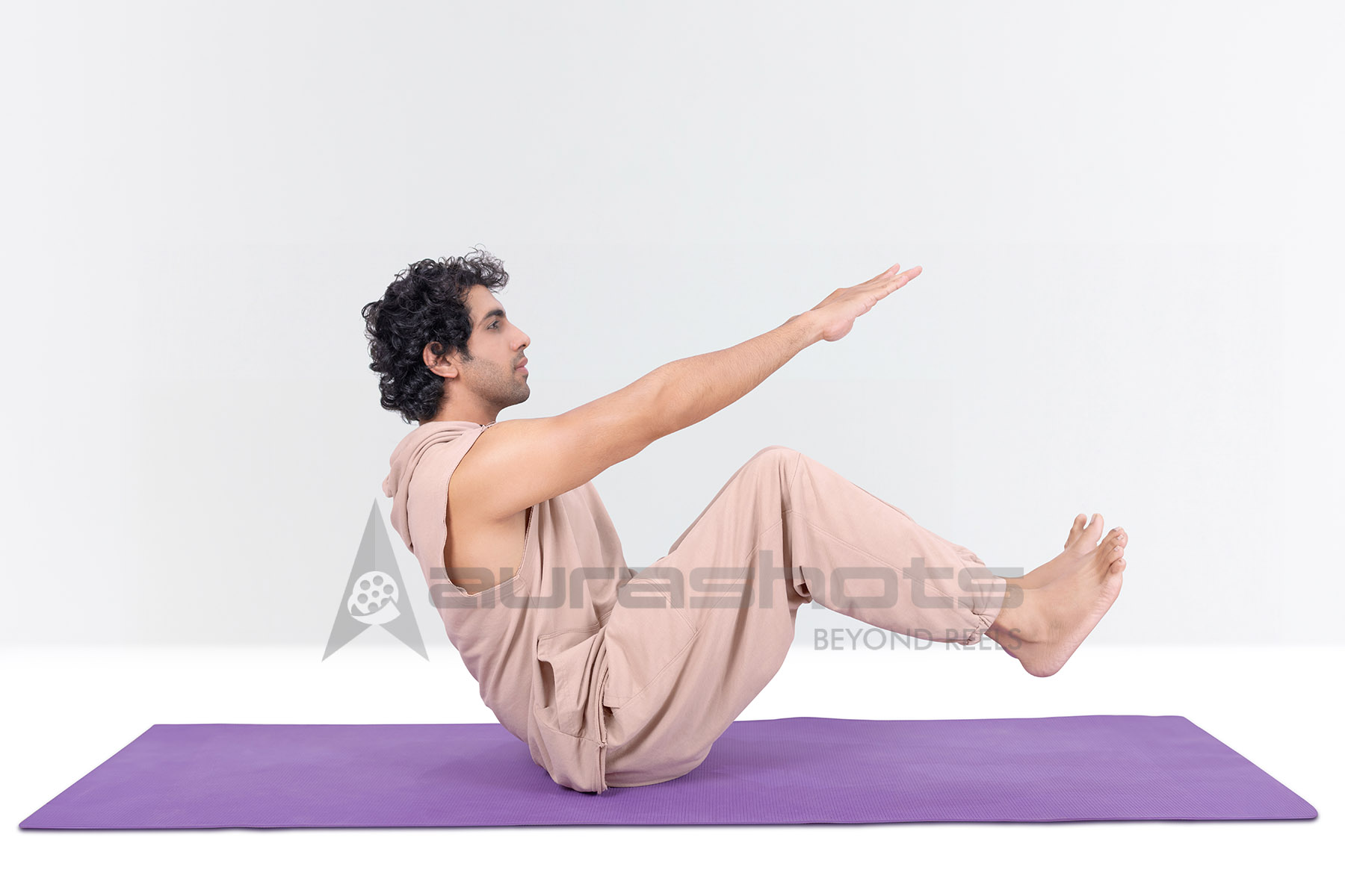 AS25020199-Indian man in Half Boat Pose engaging core with arms and legs raised