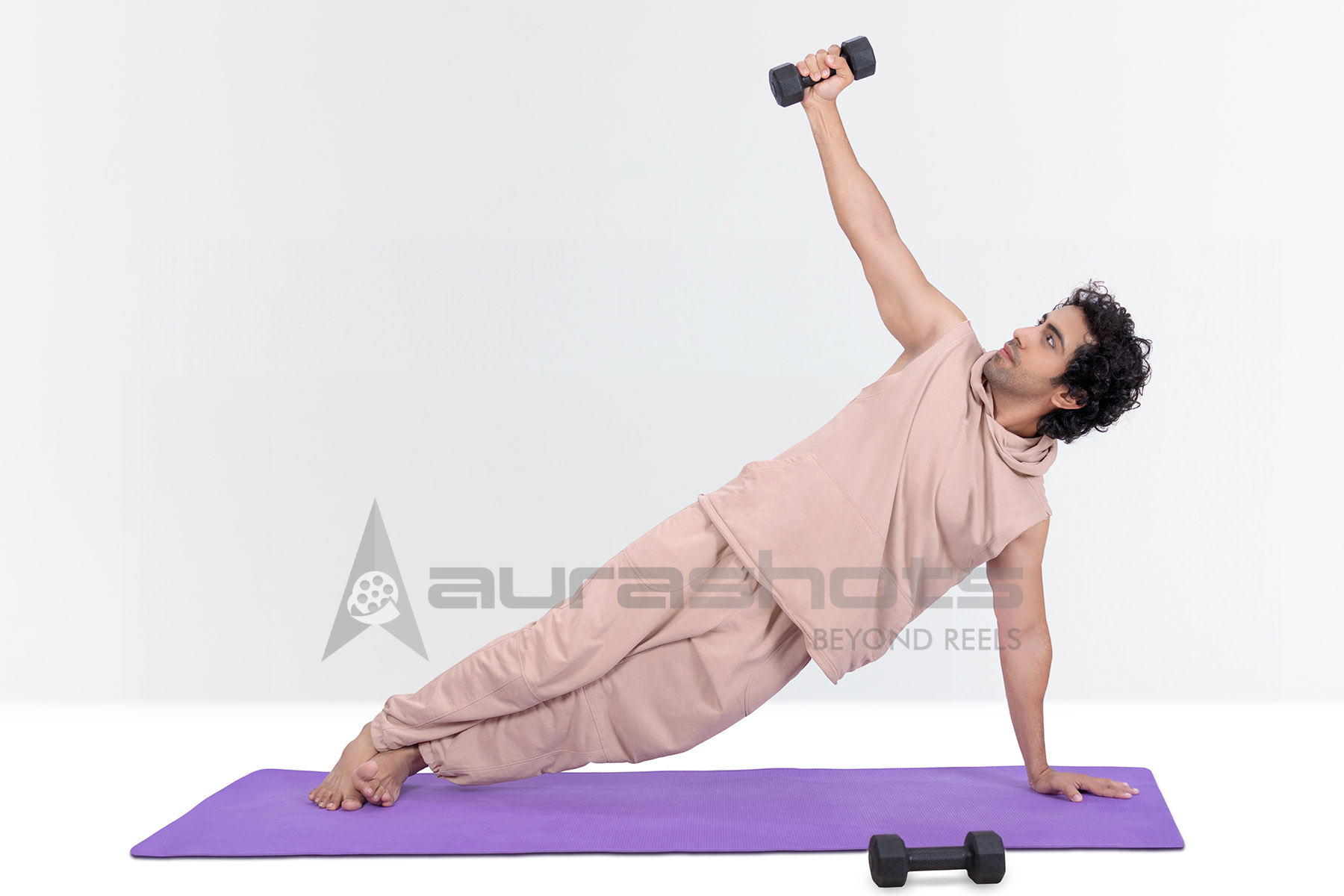AS25020207-Indian man in Side Plank with dumbbell performing strength-yoga fusion